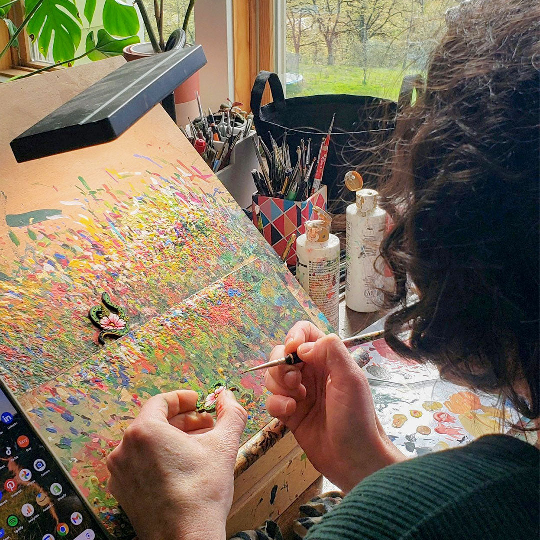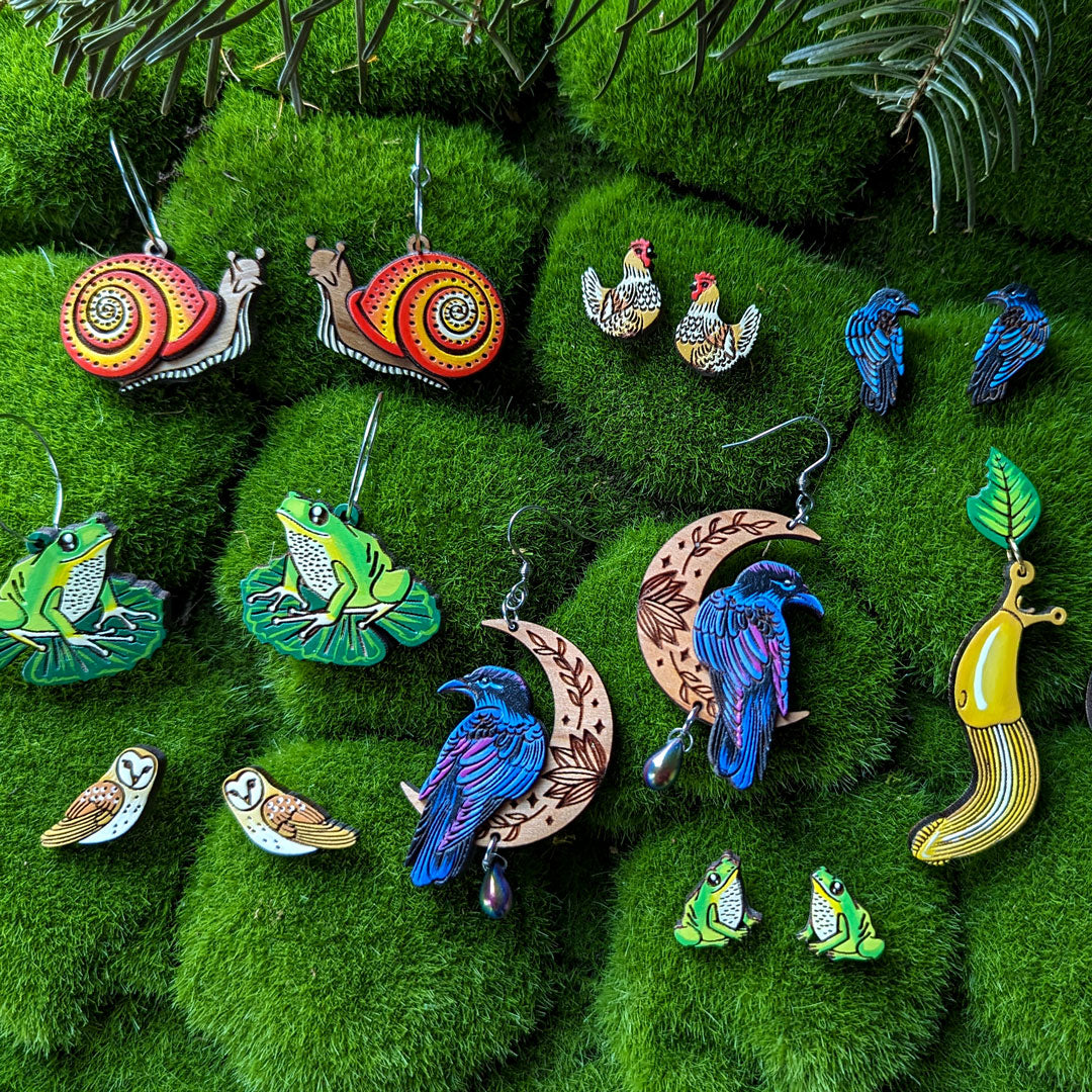 Using wood as my canvas, I paint jewelry for those who want to express their love of nature. From flowers and veggies, to fungi and forest creatures, my tiny paintings bring joy to their owners and those around.