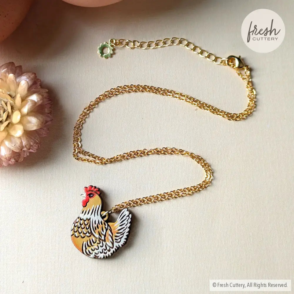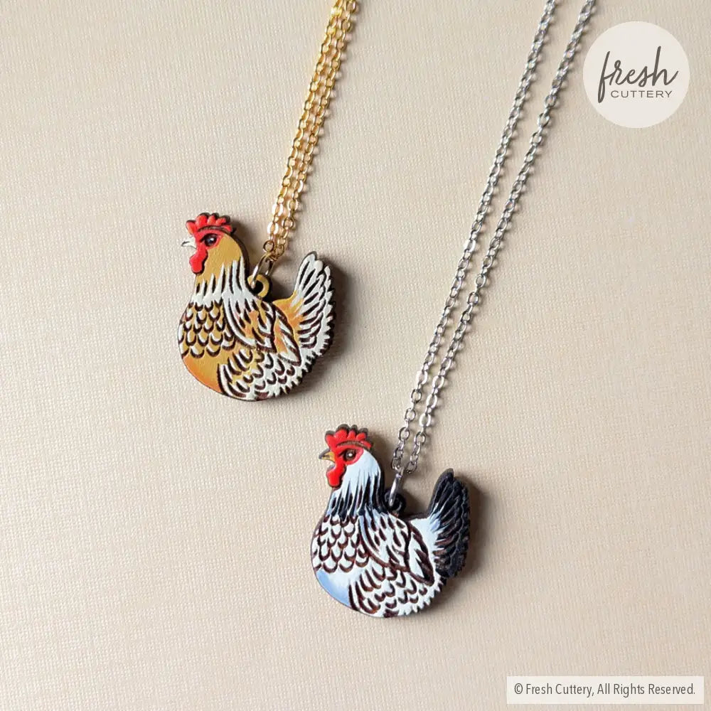 This adorable chicken necklace is perfect for chicken lovers and makes a wonderful gift and spring-time accessory. This original design is digitally illustrated and laser-etched on cherry wood and meticulously hand-painted in your choice of two breeds. Super lightweight and absolutely adorable, this hen necklace makes a great gift for backyard farmers and is a wearable work of art!